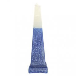 נר הבדלה דקורטיבי פירמידה משולשים כחול בעבודת יד נרות בסטייל הגליל