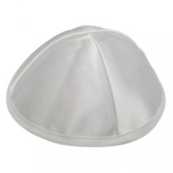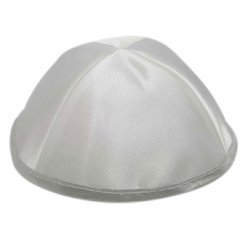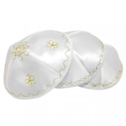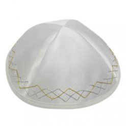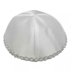 כיפה סאטן לבנה עם רקמה כסף וזהב
