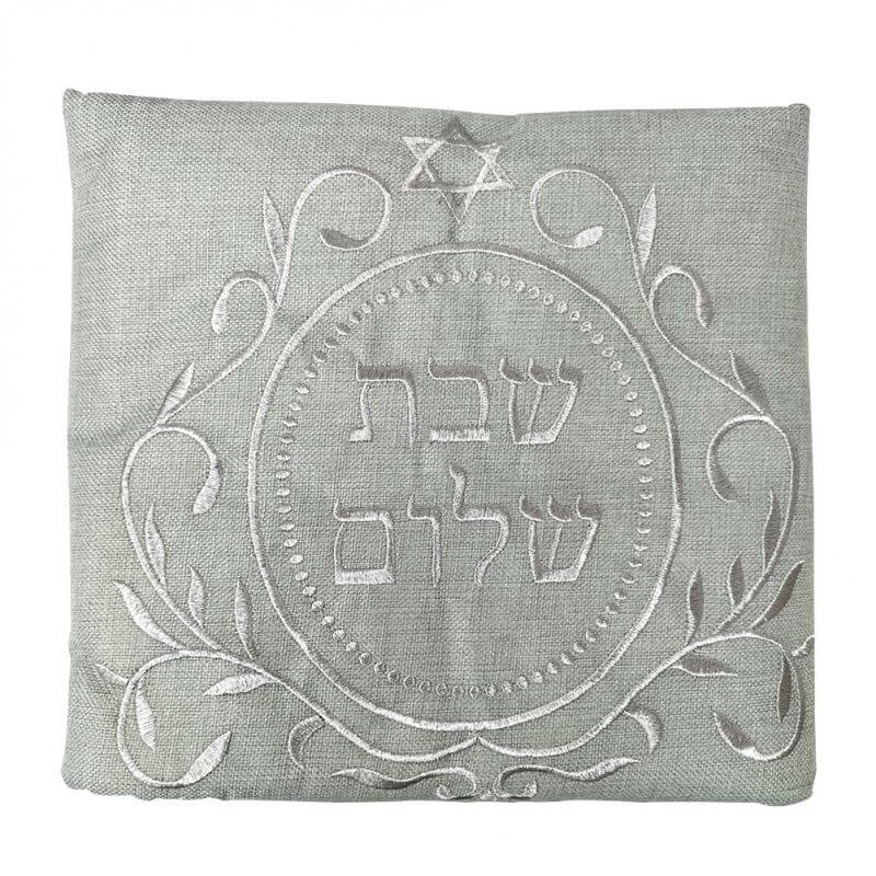 כיסוי פלטה רקום לשבת ולחג- אפור בהיר שבת מעוטר