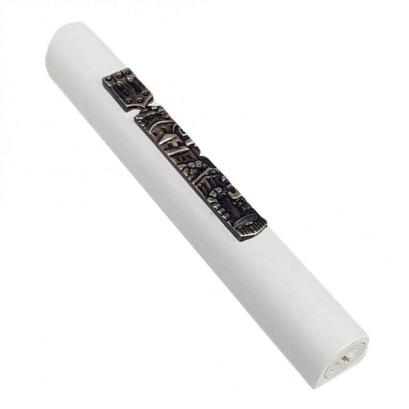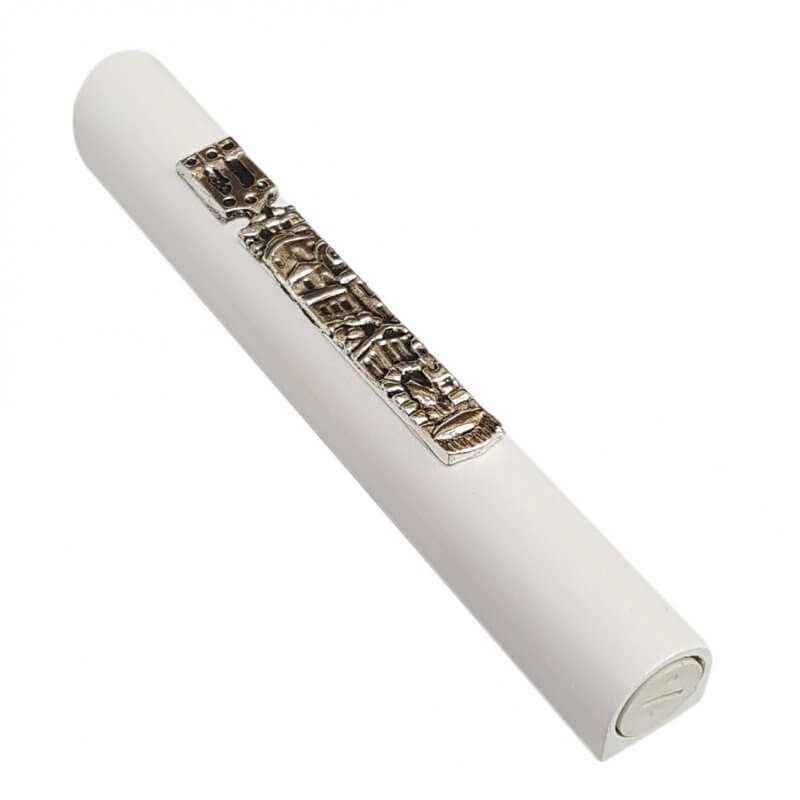 בית מזוזה עץ חצי עגול לבן ש’ ירושלים פיוטר כסוף