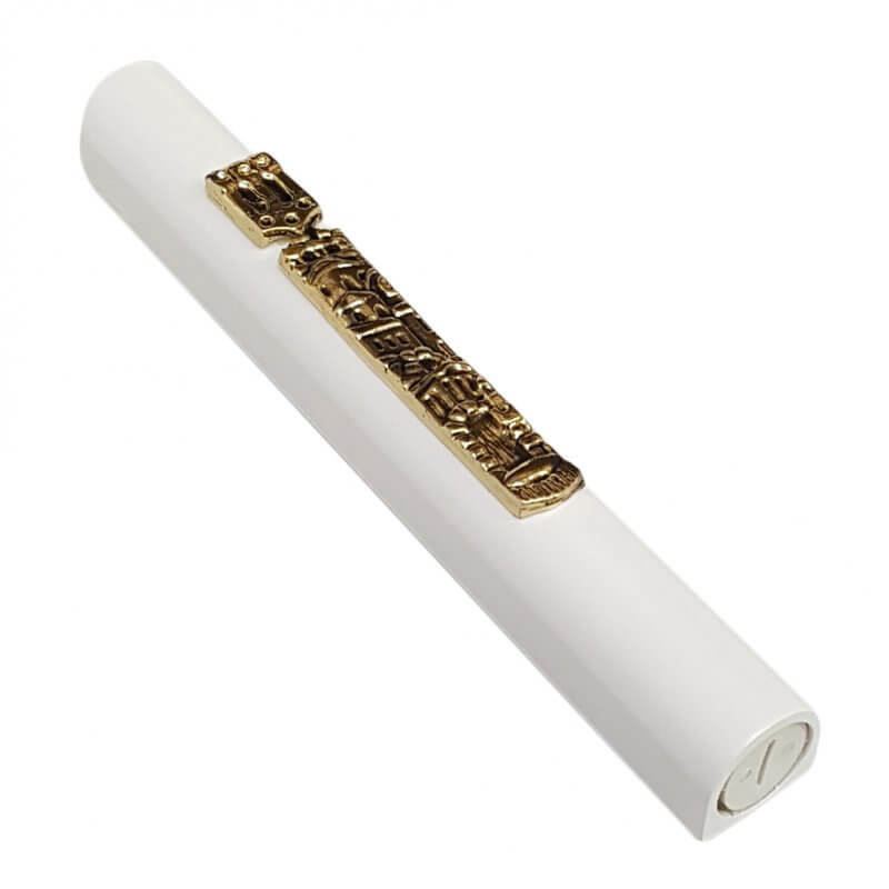 בית מזוזה עץ חצי עגול לבן ש’ ירושלים זהב