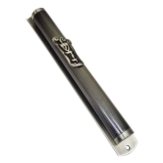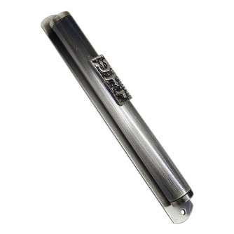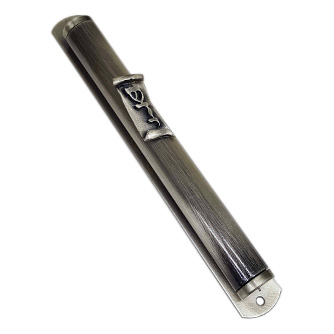 בית מזוזה עגול פיוטר כסוף עם דוגמת ש.ד.י. כותל מלבן