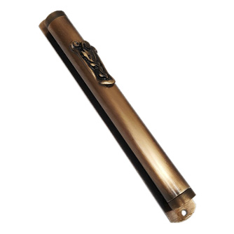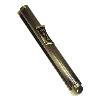 בית מזוזה עגול פיוטר צהוב עם דוגמת ש.ד.י. קלף