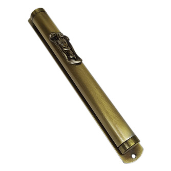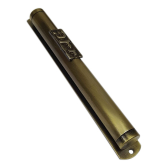 בית מזוזה עגול פיוטר צהוב עם דוגמת ש.ד.י. כותל מלבן