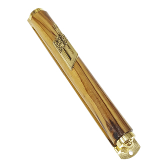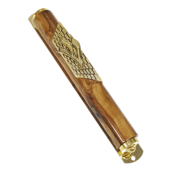 בית מזוזה עץ ש’ כותל מעוגל זהב