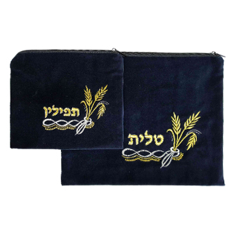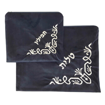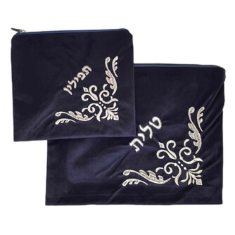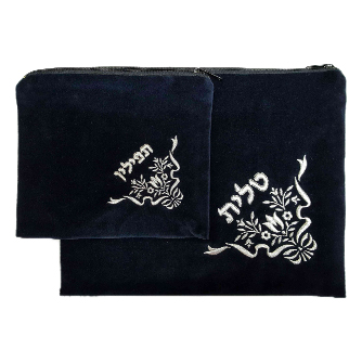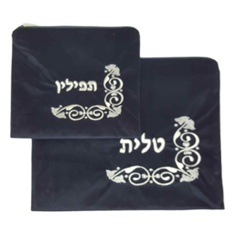 סט טלית ותפילין קטיפה כחול כהה- מבצע תפזורת