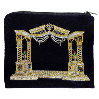 סט טלית ותפילין קטיפה כחול כהה- מבצע כסף 8