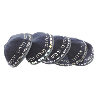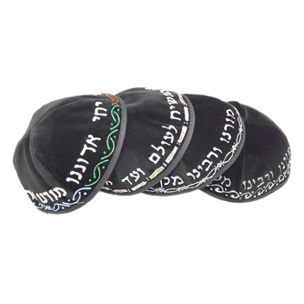 כיפת קטיפה שחורה “יחי אדוננו” מקושטת 4 פינות