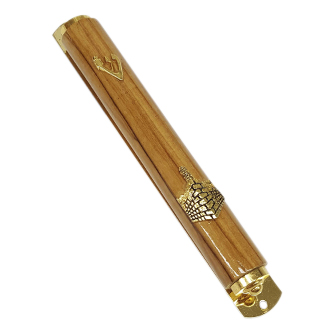בית מזוזה עץ עם מגדל דוד זהב