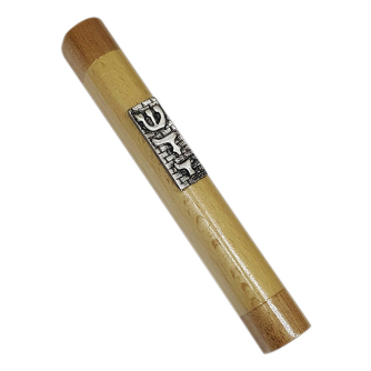 בית מזוזה עץ חצי עגול בוק+ פקאן מקושט ש.ד.י. כותל מלבן פיוטר כסוף