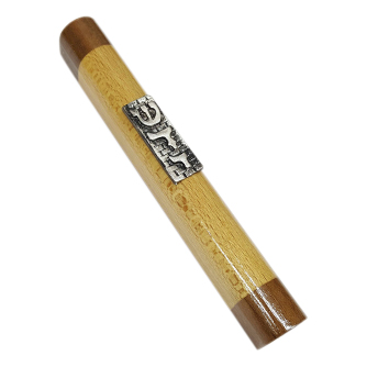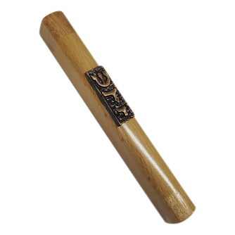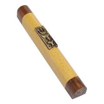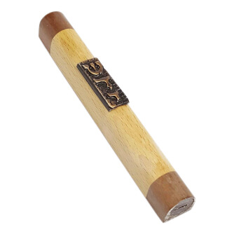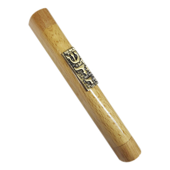 בית מזוזה עץ חצי עגול בוק+ פקאן מקושט ש.ד.י. כותל מלבן פיוטר צהוב