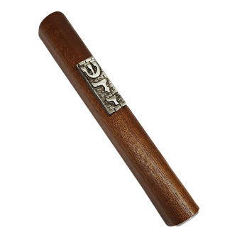 בית מזוזה עץ חצי עגול בוק+ מהגוני מקושט ש.ד.י. כותל מלבן פיוטר כסוף