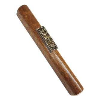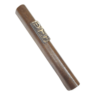 בית מזוזה עץ חצי עגול בוק+ מהגוני מקושט ש.ד.י. כותל מלבן פיוטר צהוב