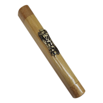 בית מזוזה עץ חצי עגול בוק+ פקאן מקושט ש.ד.י. כותל מעוצב מפיוטר