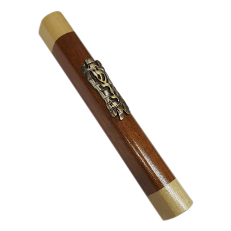 בית מזוזה עץ חצי עגול מהגוני מקושט ש.ד.י. כותל מעוצב פיוטר צהוב