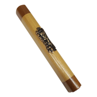 בית מזוזה עץ חצי עגול בוק+מהגוני מקושט ש.ד.י. כותל מעוצב