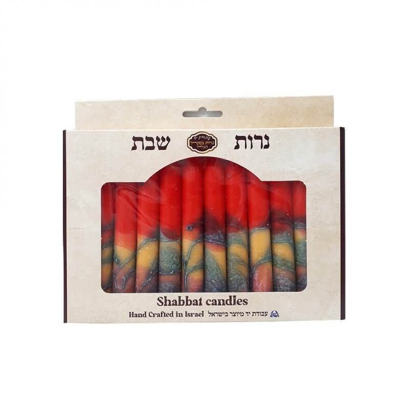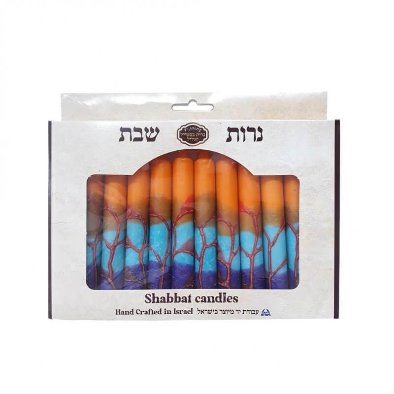 חבילת נרות שבת מקושטים בעבודת יד צבעוני Y נרות בסטייל הגליל