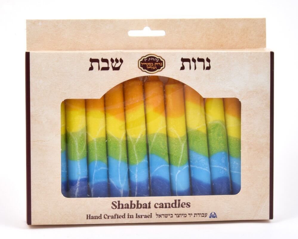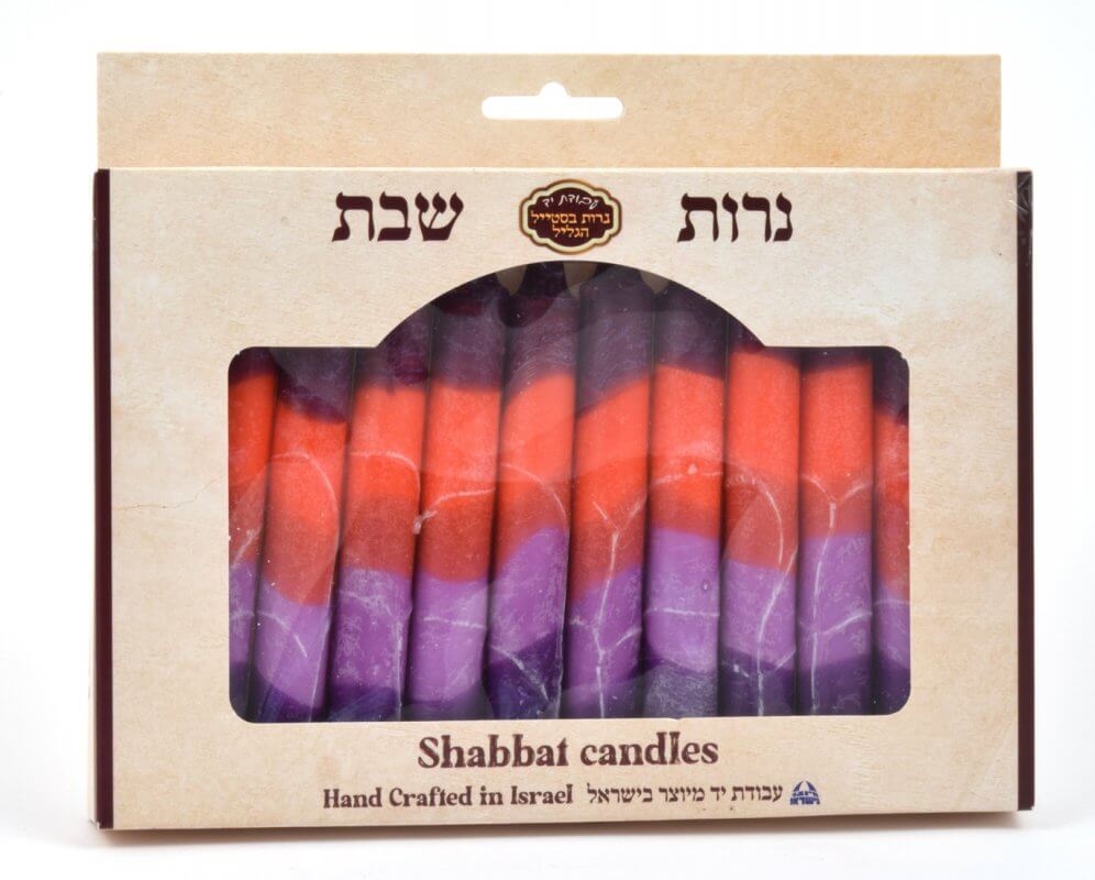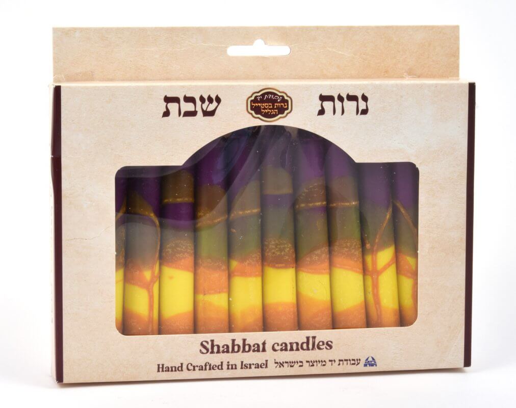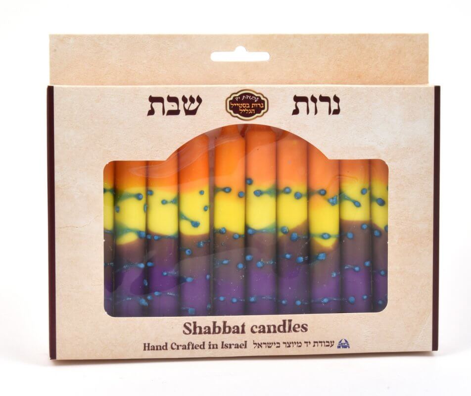 חבילת נרות שבת מקושטים בעבודת יד צבעוני P נרות בסטייל הגליל