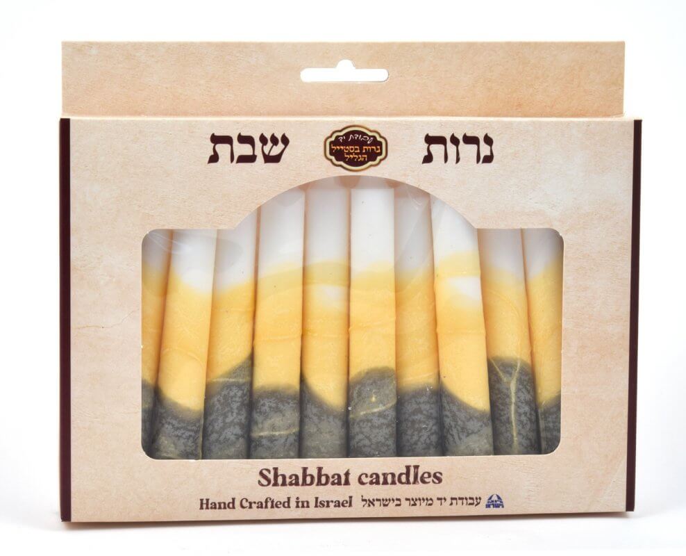 חבילת נרות שבת מקושטים בעבודת יד ראש צהוב נרות בסטייל הגליל