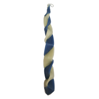 זוג נרות הבדלה קלועים בעבודת יד דונג כחול לבן נרות צפת / נרות בסטייל הגליל