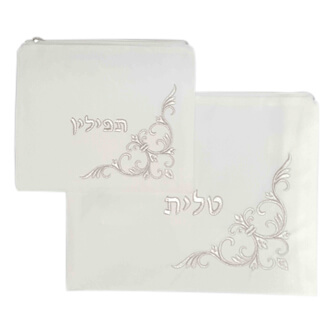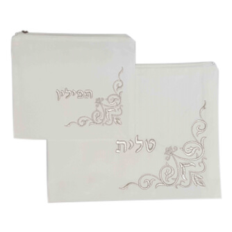 סט טלית ותפילין קטיפה לבן- מבצע תפזורת