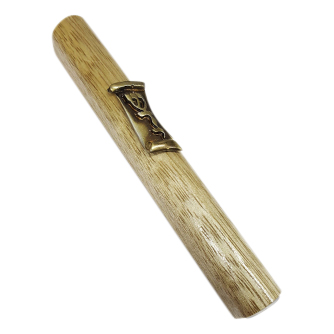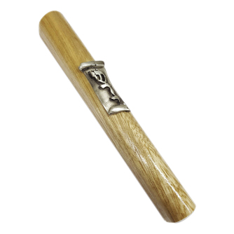 בית מזוזה עץ חצי עגול צפצפה עם ש’ מעוגלת מפיוטר כסוף