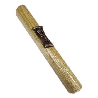 בית מזוזה עץ חצי עגול צפצפה עם ש’ מעוגלת מפיוטר צהוב
