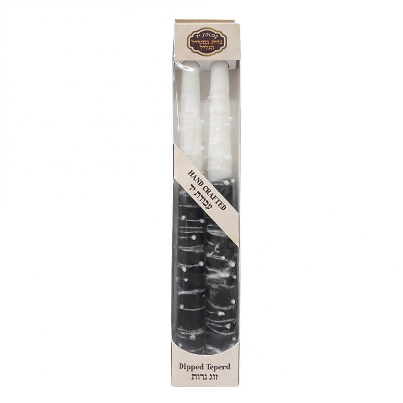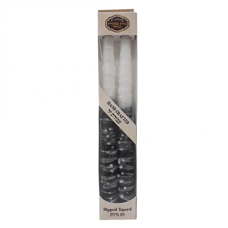 זוג נרות שבת מקושטים שחור לבן בעבודת יד נרות בסטייל הגליל