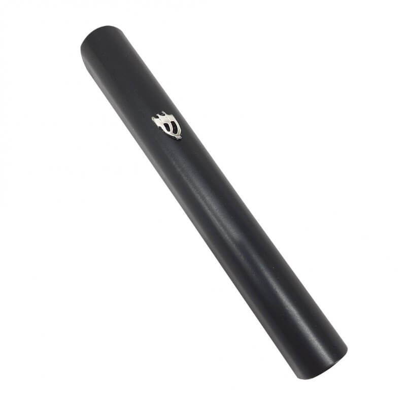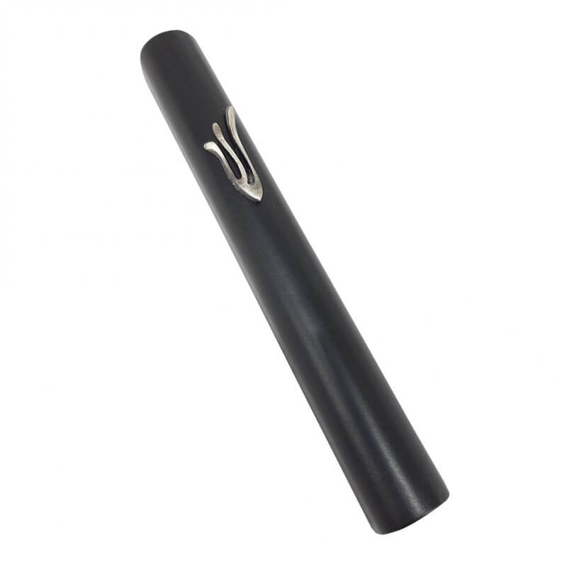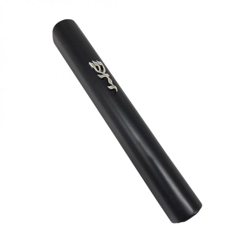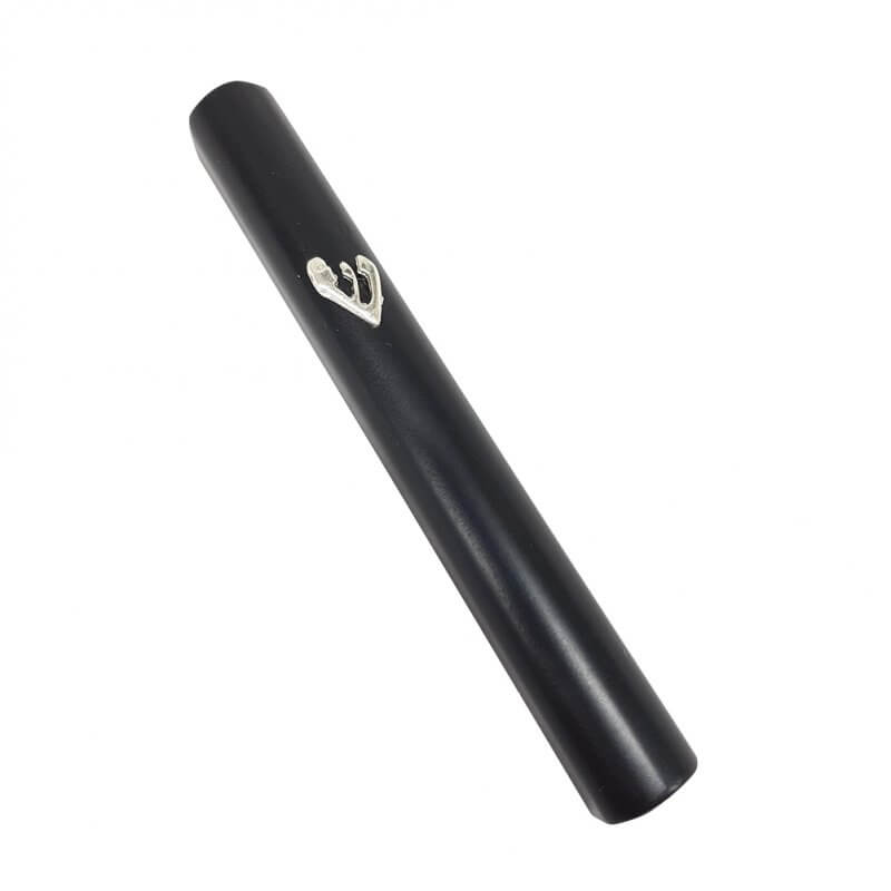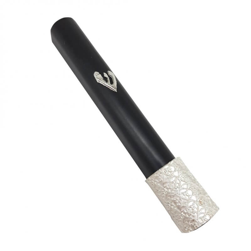 בית מזוזה עץ חצי עגול שחור מקושט ש’ קטנה כסף