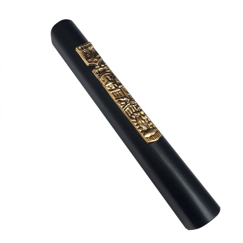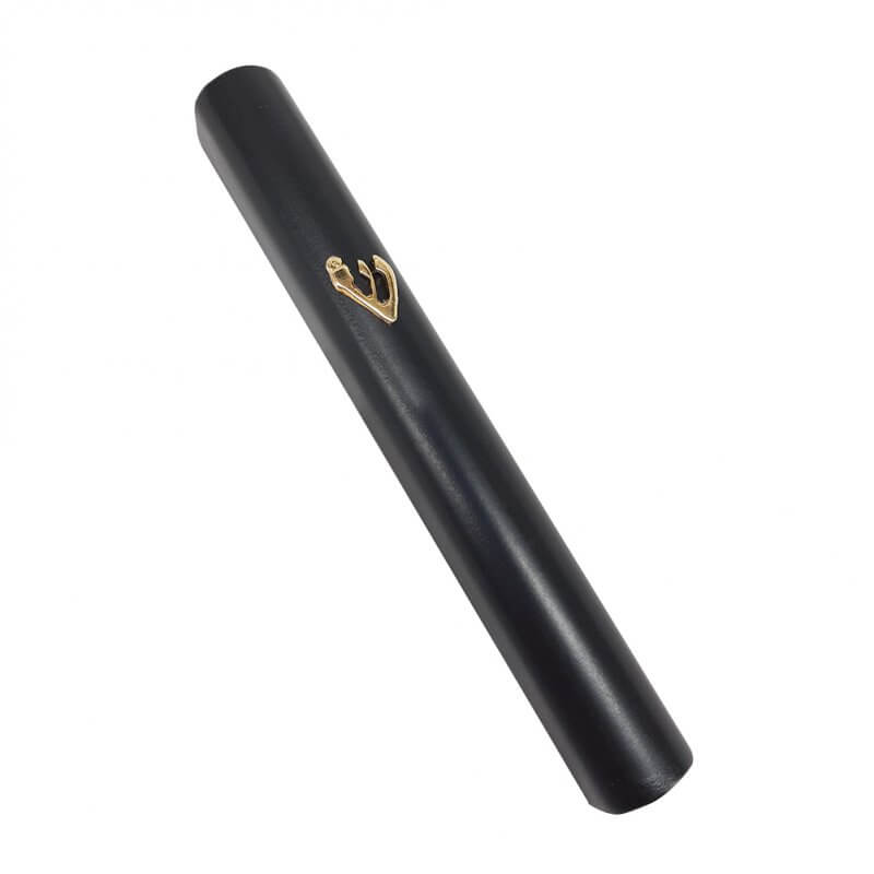 בית מזוזה עץ חצי עגול שחור מקושט ש’ קטנה זהב