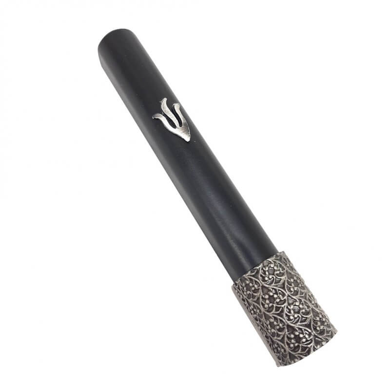 בית מזוזה עץ חצי עגול שחור מקושט פיליגרם ש’ קטנה כסף