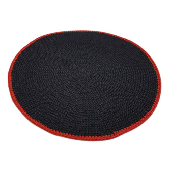 כיפה סרוגה עבודת יד שטוחה שחור פס אדום