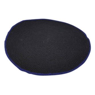 כיפה סרוגה עבודת יד שטוחה שחור פס כחול