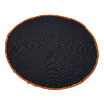 כיפה סרוגה עבודת יד שטוחה שחור פס כתום