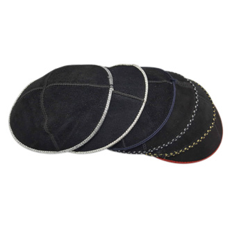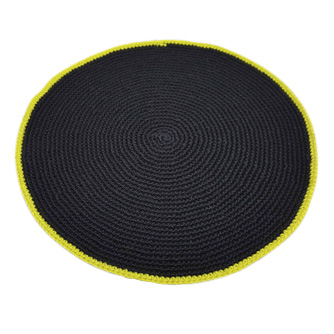 כיפה סרוגה עבודת יד שטוחה שחור פס צהוב