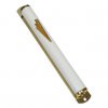 בית מזוזה אלומיניום מצופה בטפט ועליו משלימה את העיצוב האות שי"ן המצופה בזהב 24K או בכסף 925, האות הראשונה בשם השם, המסמלת את הקדושה של המזוזה הנמצאת בתוכו ושומרת על החדר בו תלויה המזוזה.