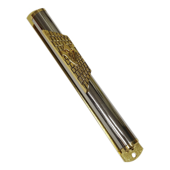 בית המזוזה המרהיב מניקל מבריק בצבעי כסף וזהב משלב בדוגמתו את הכותב המערבי יחד עם האות ש', שמסמלת את שם השם ומצביעה על הקדושה במזוזה בפנים.