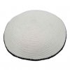 כיפה סרוגה בעבודת יד בצבע לבן עם דוגמה פשוטה אך קלאסית- פס בקצה בצבע שחור.