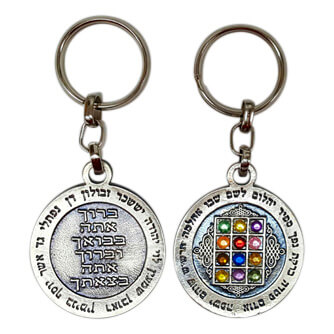 מחזיק מפתחות מדהים בצורת עיגול עם דוגמת החושן אותו היה עונד הכהן הגדול בזמן עבודתו במקדש במרכז, ומסביבו שמות אבני החושן.