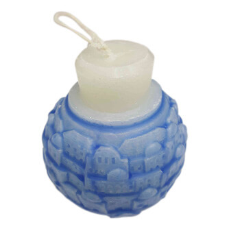 נר הבדלה דקורטיבי ירושלים כחול לבן בעבודת יד נרות צפת / נרות בסטייל הגליל