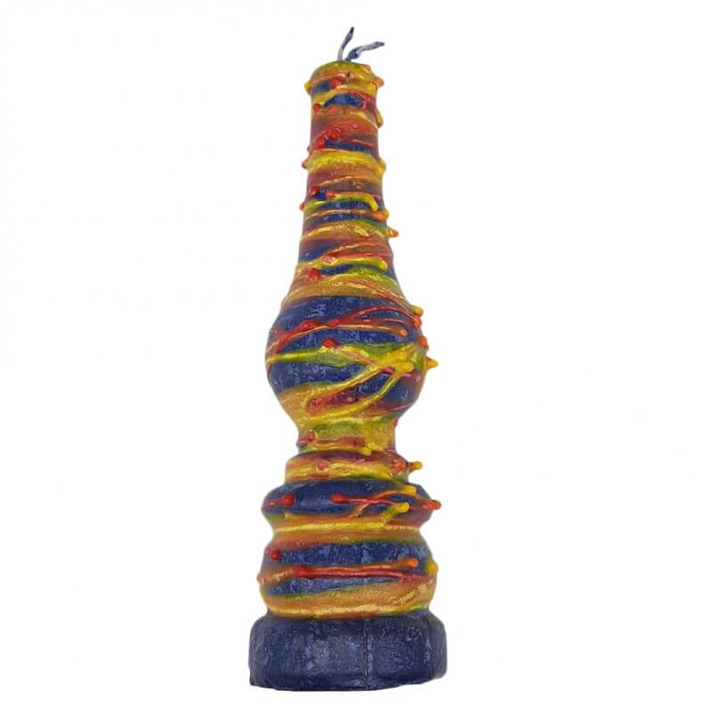 נר הבדלה דקורטיבי עששית טיפות כחול צבעוני בעבודת יד נרות בסטייל הגליל