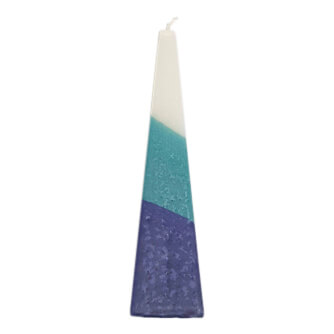 נר הבדלה דקורטיבי פירמידה כחול טורקיז לבן בעבודת יד נרות בסטייל הגליל