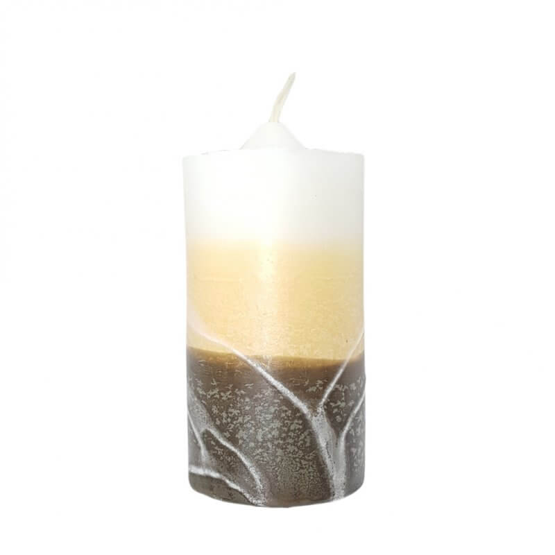 נר הבדלה דקורטיבי פילר ברונזה שקד לבן בעבודת יד נרות בסטייל הגליל
