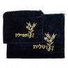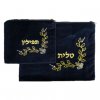 סט טלית ותפילין קטיפה משובחת כחול כהה רקמת זהב פינתי