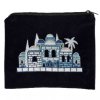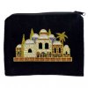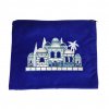 סט מהודר לאחסון טלית ולתפילין בדוגמת חומת ירושלים, הרקומה בחוט בצבע כסף או זהב, מקטיפה בצבע כחול כהה.